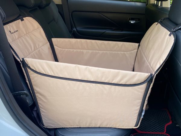 Гамак двусторонний: обе стороны изготовлены из влагостойкой ткани Oxford 600D. Предусмотрено боковые стенки для защиты дверей, и отверстия для фиксации собаки поводком безопасности.