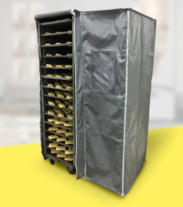 Термочехлы используются перед формованием - это технологический процесс производства хлебобулочной продукции непосредственно перед выпечкой. Пекарский аксессуар является АЛЬТЕРНАТИВОЙ РАССТОЕЧНОГО ШКАФА, поддерживает необходимую температуру. Подходит для холодной ферментации в условиях холодильной камеры, для транспортировки и хранения изделий в охлажденном, замороженном или готовом виде на предприятиях общественного питания и торговли. Исключает излишки влаги при расстойке и заморозке. Не требует электроэнергии и парогенерации. Инерционное тепло, выделяющееся в процессе переработки сахара дрожжевым комплексом в заготовке, отражается от термочехла, создавая идеальную для подъема теста среду.