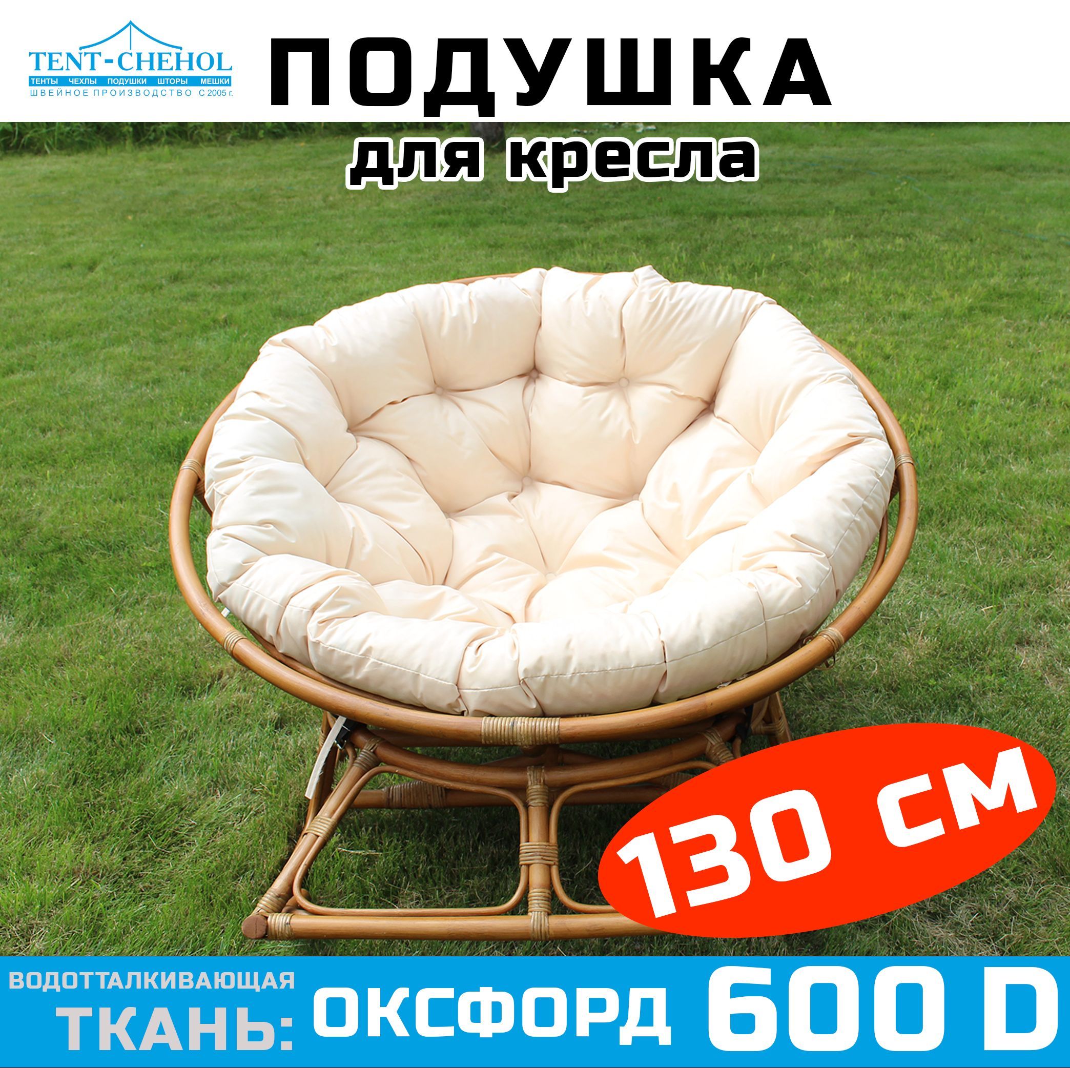 Краткое описание «Подушка круглая (Папасан) 130 см, слоновая кость (Оксфорд 600)»