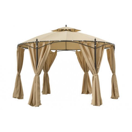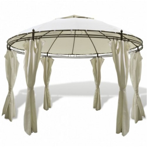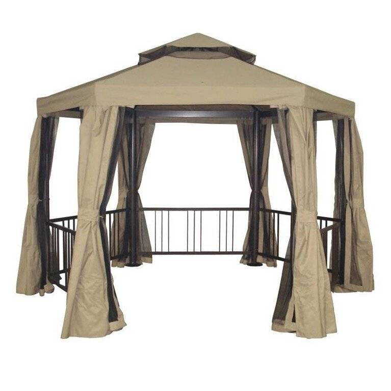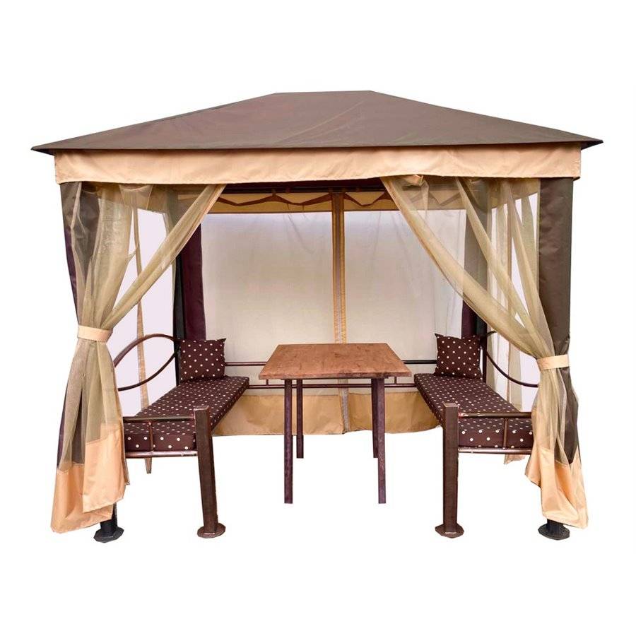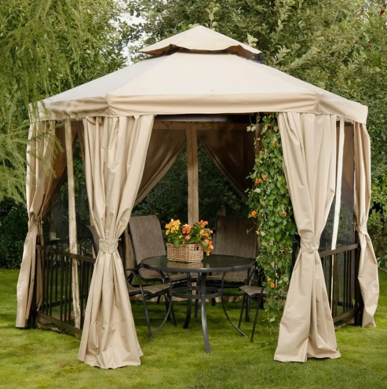 Если говорить о цветовой палитре, то для оформления садовых шатров идеально подойдут шторы природных тонов. Светлые оттенки не утяжеляют конструкцию и не перегружают пространство.