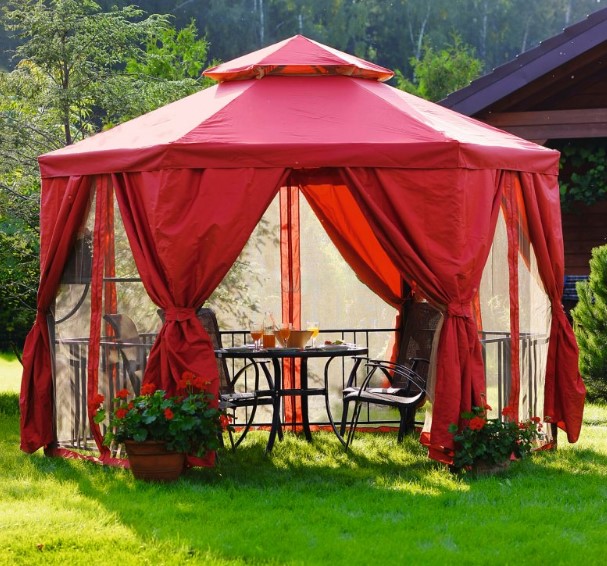 Садовые шатры являются удобными и практичными сооружениями, позволяющими с комфортом проводить время на свежем воздухе. Жаркими днями они укрывают от палящего солнца, в ненастную погоду - от ветра и дождя, вечером защищают от назойливых насекомых. Сделать отдых более приятным и комфортным позволяют различные аксессуары, в частности специальные шторы для шатра.