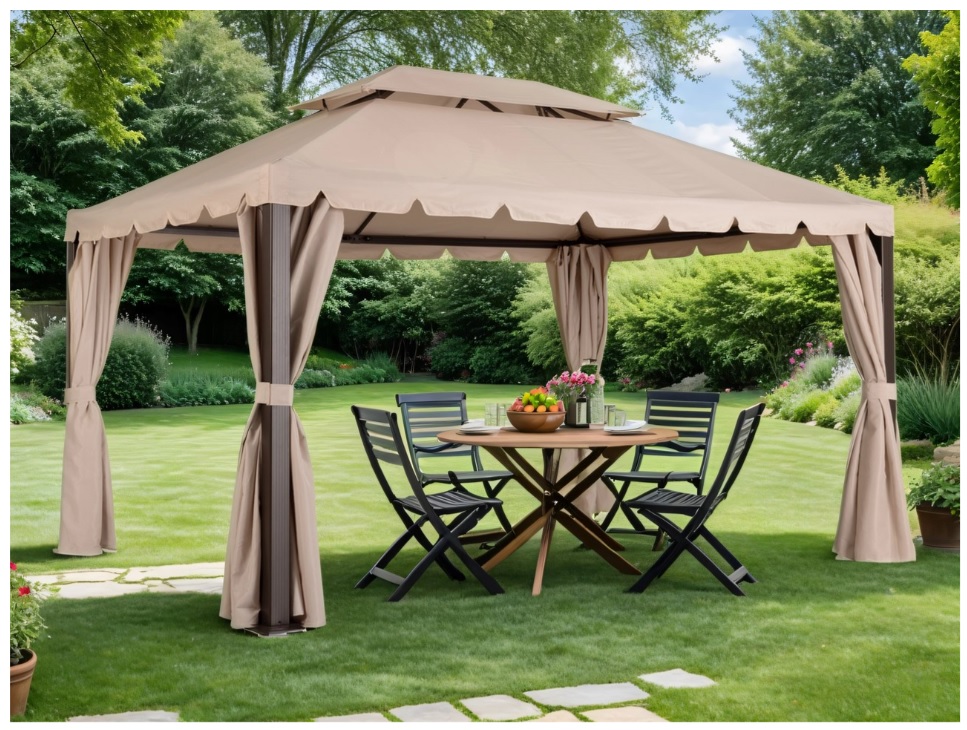 Шторы для шатров являются стильным аксессуаром, способным удачно дополнить любую садовую конструкцию. Если говорить о практическом назначении изделий, то с их помощью удается защитить внутренне пространство от ветра, солнца и дождя. Также они приглушают сторонние уличные шумы, становятся преградой для надоедливых насекомых и ширмой для любопытных взглядов прохожих.