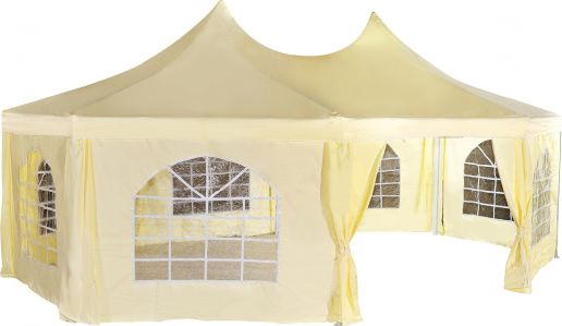 Хорошо отдохнуть можно не только на садовых качелях, но и под тентом-шатром Кафе. Кроме того, такой шатёр может использоваться в качестве летнего кафе. Его высота составляет 40 см, длина 600 см, а ширина 500 см. Изготовлен данный шатёр из полиэстера, у него бежевый цвет. Такие тенты могут быть использованы для совершенно разных целей, например, шатёр может быть использован для обычного домашнего отдыха или в качестве оборудования для организации летнего кафе или выставок. Это отличный выбор для тех, кто любит отдыхать с комфортом. Такой шатёр можно брать с собой в путешествие или на пикник, при этом вам больше не будет страшно яркое солнце, дождь, а также плохая погода. Лучше всего не использовать этот шатёр при сильном ветре.