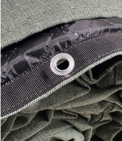 Штора из армейского брезента с люверсами фирмы Тент-Чехол идеально подходит для использования в гараже в качестве завесы с целью защиты помещения от холода, дождя и иных воздействий внешней среды.