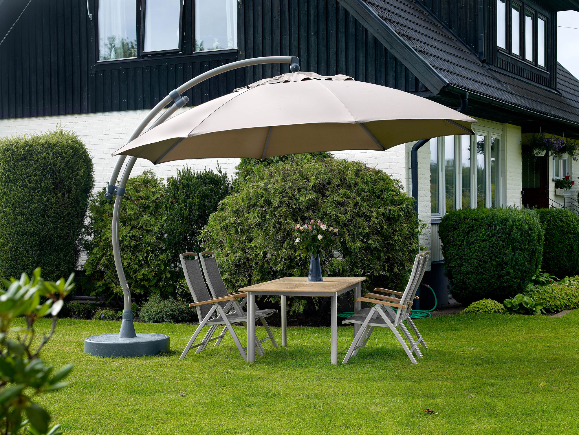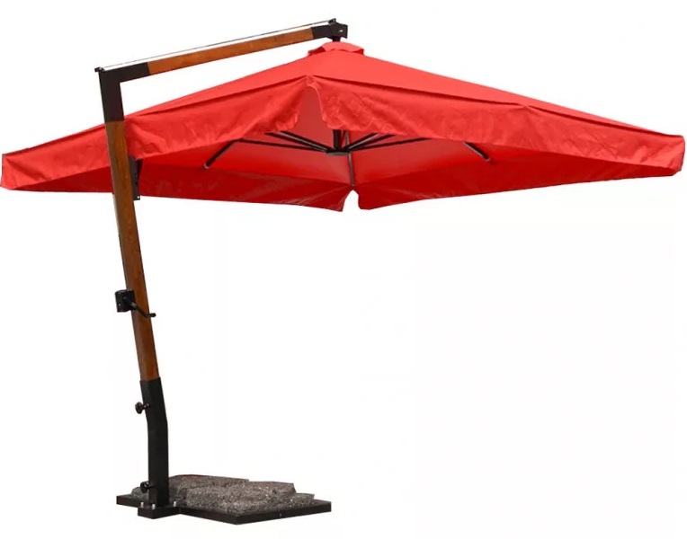 - Благодаря тому, что у материала есть специальная пропитка, он защищён от прямых солнечных лучей. Под таким зонтом вы всегда будете ощущать прохладу.