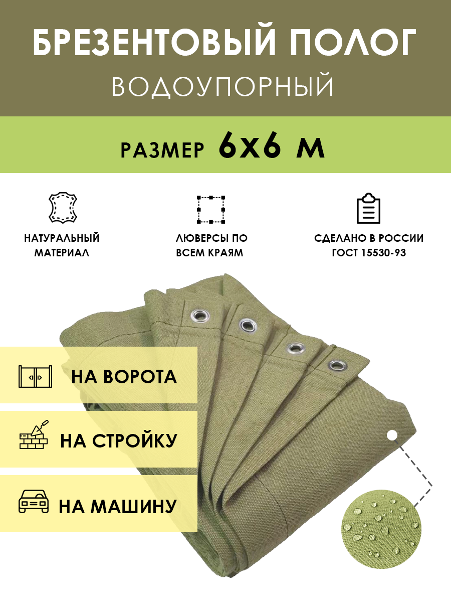 Магазин тент-чехол предлагает вам купить водоупорный брезентовый полог размером 6х6 м стандарт. У полога есть люверсы, при помощи которых его можно закрепить в необходимом месте. Люверсы располагаются с шагом 0,5 м по периметру, если вы хотите изменить шаг люверсов, то можете заказать изделие индивидуально. В составе материала содержатся лён и хлопок, он имеет водоупорную пропитку, а также выполнен в цвете хаки разных оттенков. Водоупорность данного изделия - 100 мм водяного столба, сшито оно при помощи очень прочных лавсановых нитей. Такой полог хорошо сохраняет как тепло, так и холод, он пропускает через себя конденсат, благодаря чему металлические конструкции не будут ржаветь.